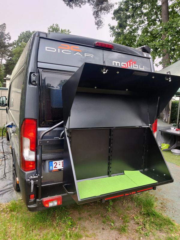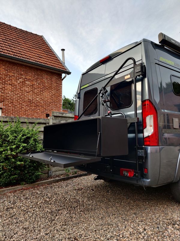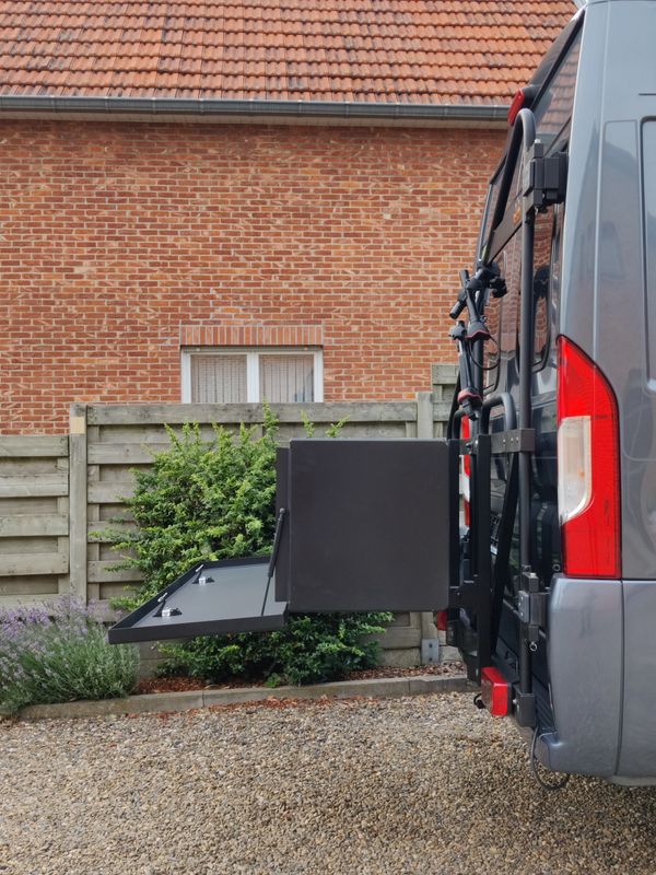 Deze gaan verticaal open. De openingszijde is te kiezen. Deze kunnen tegen de Van 'n Bike worden gemonteerd. Ze kunnen ook op een vereenvoudigd chassis worden gemonteerd, dus vraag er zeker achter.